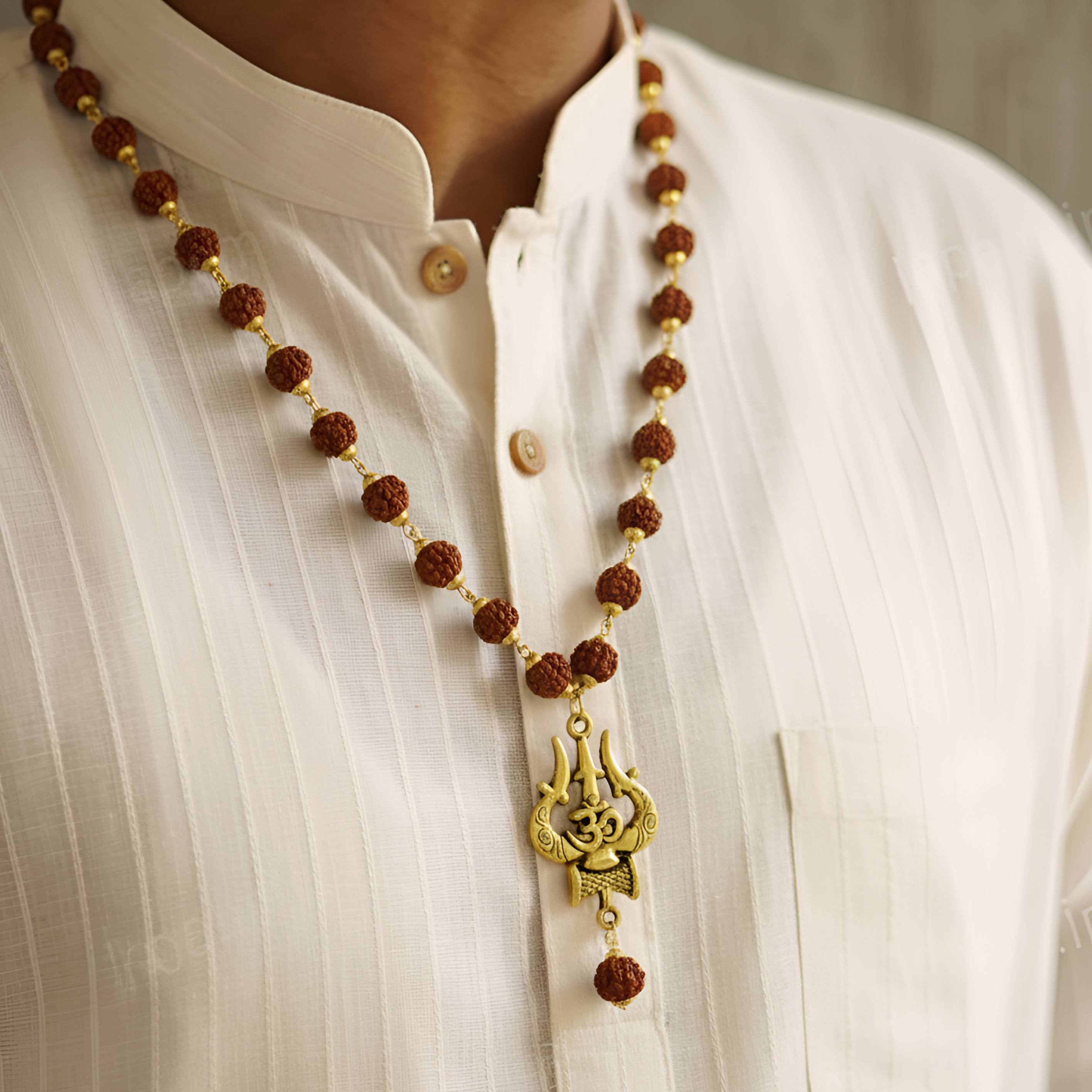 Gold Plated OM Shiva Trishool Rudraksha Necklace